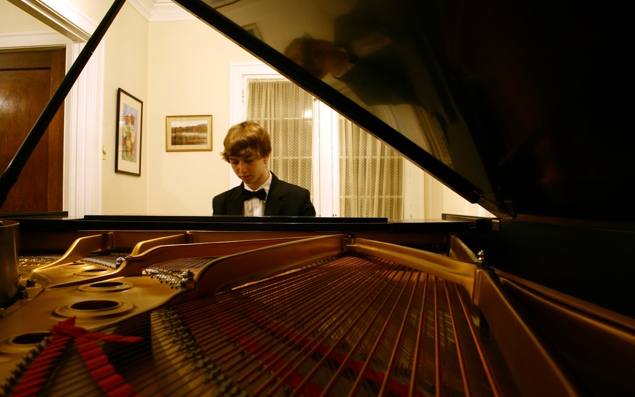 (Ben took the photo of him playing our grand piano – click for a larger version)