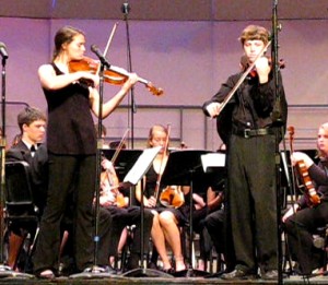 Last night Ben and Darcy played the first movement of the Sinfonia Concertante by Mozart with the Oak Park River Forest High School Symphony Orchestra (their high school orchestra). Ben and Darcy played with them because they received an ‘honorable mention’ in this year’s High School Concerto Competition.