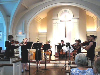Nine members of the WCSE, including Ben and West, played Brandenburg Concerto no. 3 by Bach. The second movement cadenza (which begins at around 6:15) was written by Ben.